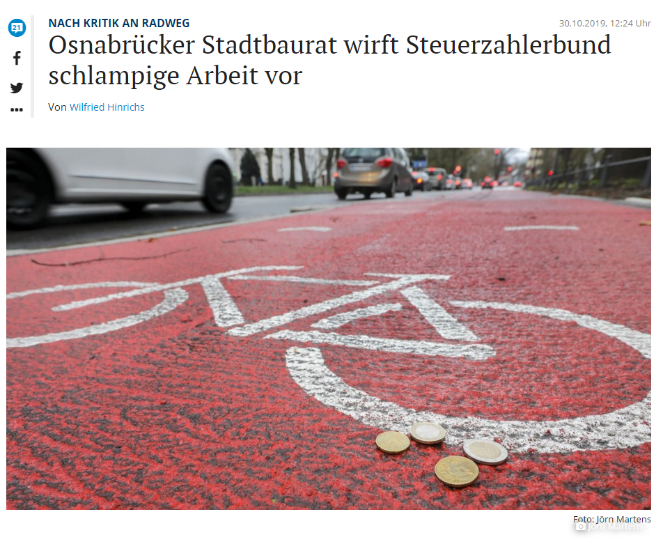 - „Es sei alles über den Tisch des Oberbürgermeister gegangen”: Es war Herr Otte und nicht der Oberbürgermeister (OB), der versprach, dass die protected bike line (pbl) nur 275.000 € kosten würde – am Ende standen jedoch 430.000 Euro € bzw. 700.000 € auf der Rechnung des Steuerzahlers. Dies hätte leicht vermieden werden können. Es war Herr Otte und nicht der Oberbürgermeister (OB), der behauptete, der Neumarkt müsse wegen Baustellentätigkeiten gesperrt werden, bis ein Gericht das Gegenteil und die Wahrheit bewies bzw. Herrn Ottes Darstellung einer Baustelle auf Vorrat nicht folgen wollte. Es war Herr Otte und nicht der OB, der behauptete, die Ampeln des Neumarktes seien nicht steuerungsfähig, bis der Bund der Steuerzahler das Gegenteil bewirkte usw.
